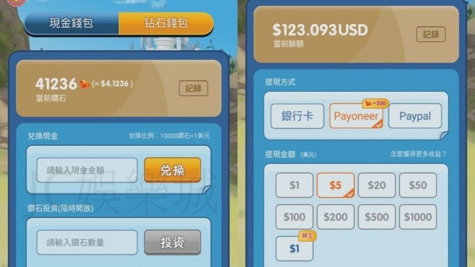 天神世界這款可以領錢的手遊中每1萬顆鑽石可以換1美元換取1美元——是「美元」啊各位!
